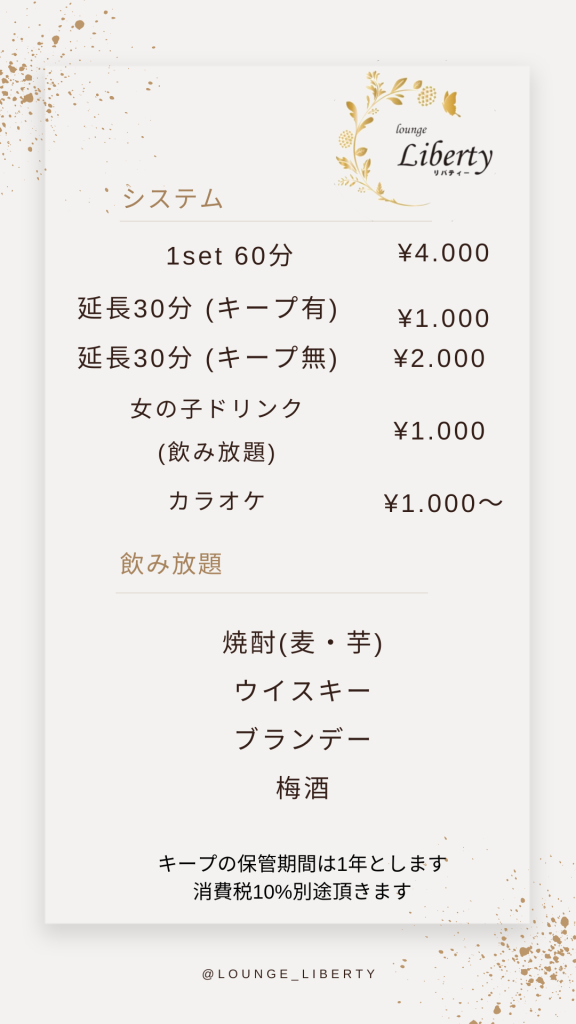 “宇部新川駅から徒歩1分。宇部で、新川で飲むなら、ぜひ当店リバティへお越しください。 20歳から28歳の可愛い女の子たちがあなたをお待ちしています!ママは44歳です